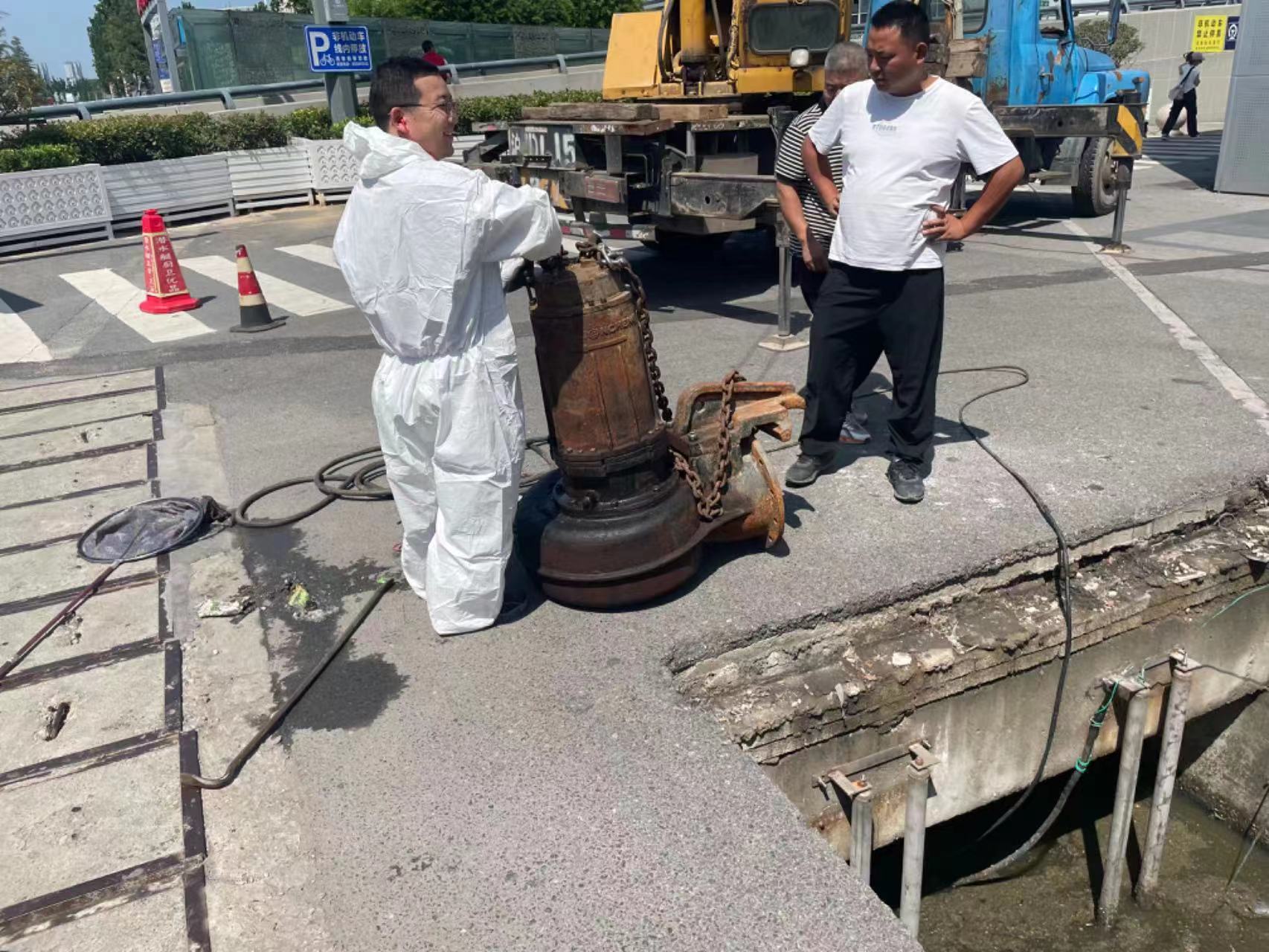 一是完善应急预案。为应对暴雨天气,进一步完善、梳理预案内容,制定雨季、防汛安全防范措施和汛期24小时值班制度,增强预案的操作性、有效性。二是检修设备管道。对站前广场及人民路隧道内8台强排泵进行全面检查维修,并将泵坑内排水管道清理顺畅,保证汛期来临时排水通畅。三是清点应急物资。准备沙袋140袋,挡水板38块,移动潜水泵9台,皮卡车1辆,应急灯、铁锹、撬杠等设备齐全,切实提升汛期防御能力。