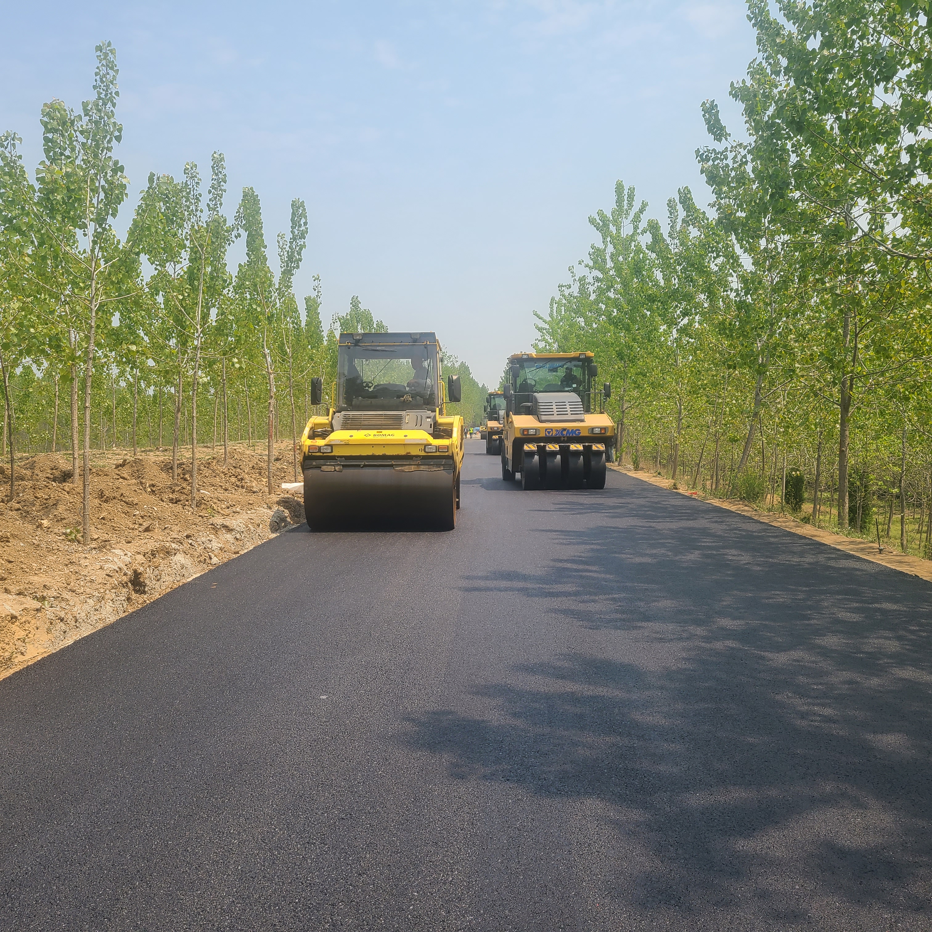 近日,新沭河堤顶路提标工程施工现场一片忙碌,机械轰鸣,正有序开展道路下面层沥青摊铺施工。本次沥青下面层采用厂拌热再生工艺,将旧沥青路面经过铣刨后运回拌和厂,再按粒径大小分级,根据路面不同层次的质量要求,将旧沥青混合料、再生剂、新沥青材料、新集料等按一定比例重新拌合成新的混合料,从而获得优良的再生沥青混凝土,铺筑成再生沥青路面。与传统工艺相比,厂拌热再生沥青质量较好控制,将旧路面材料实现循环利用,同时材料处理过程中减少了废气污染,节能环保。