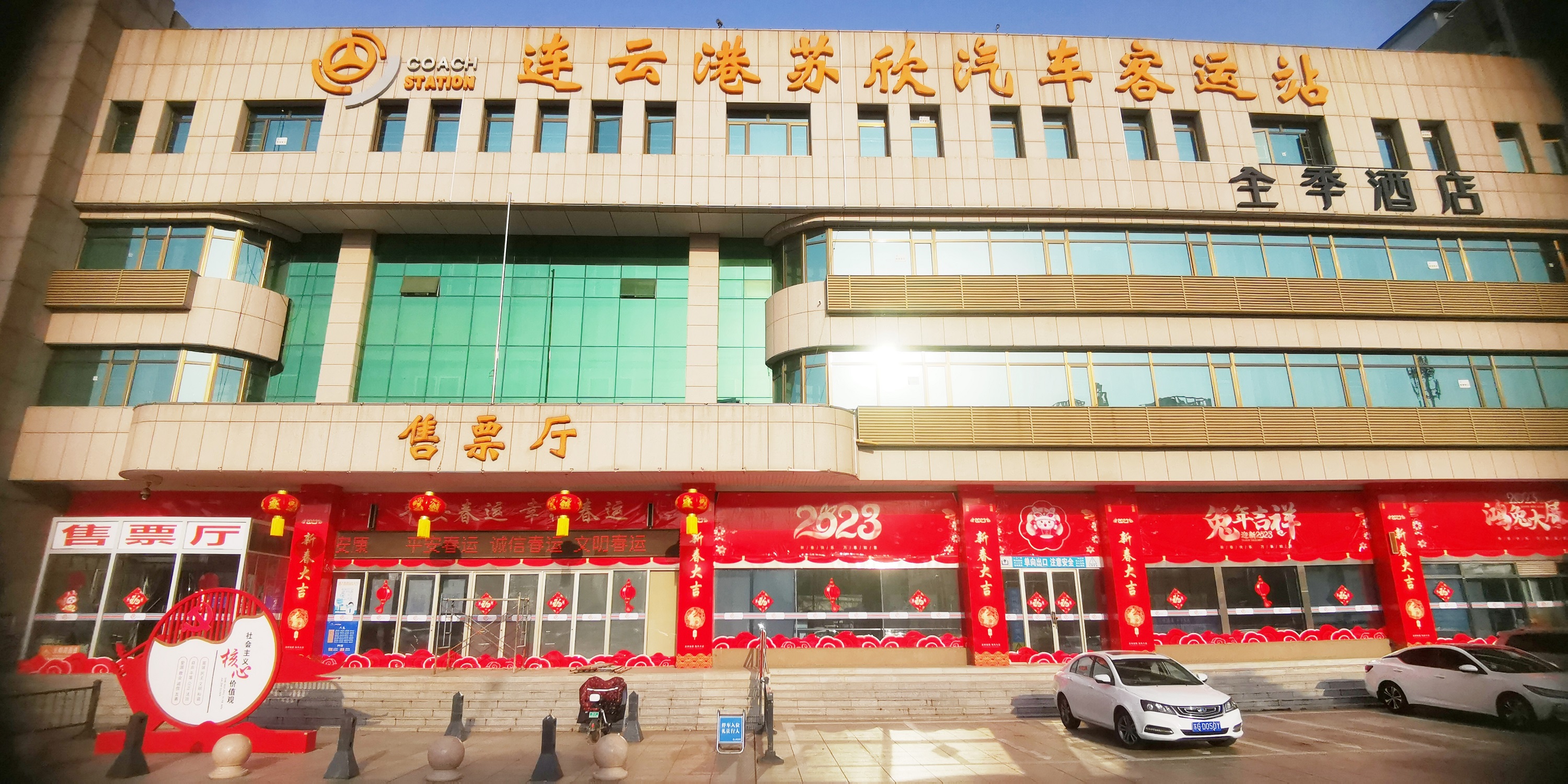 一盏盏火红灯笼高高悬挂,随处可见关于新岁的红色,是年味在向新春招手。进站大厅内的新春交通海报,站场通道玻璃上的祥云贴花,出站口的春节祝福语,雷锋车驿站的新春布置等各式各样的迎春装饰,打造了充满年味的幸福空间。