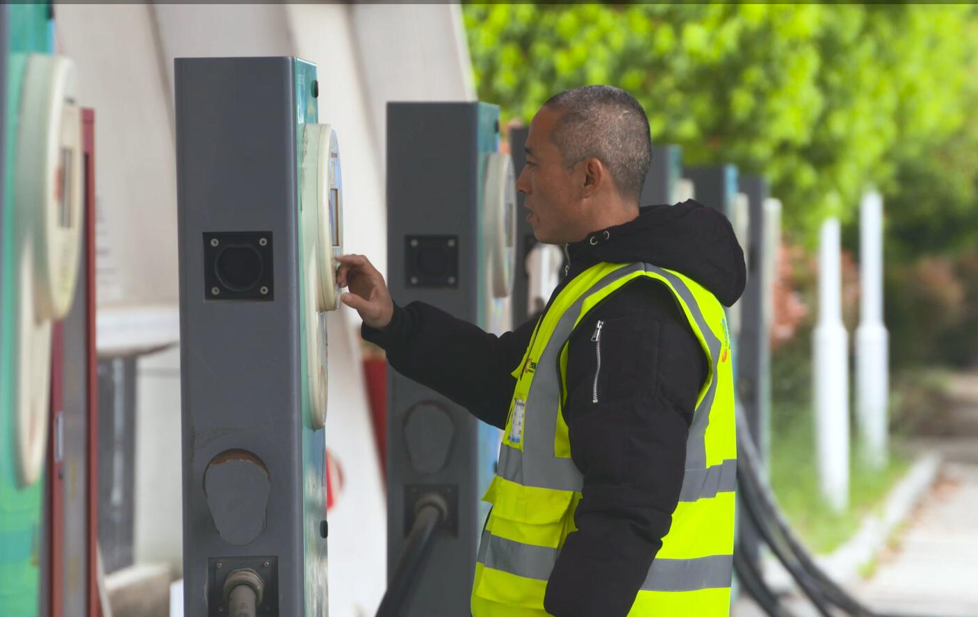他—董梁,江苏明茂新能源科技有限公司充电工,也是一名中共党员。1997年他从部队复员后被分配到公交米乐app最新版下载,米乐(中国)工作。走过春秋、渡过冬夏,弹指挥间几十载。几十载的人生耕耘,寒来暑往,花谢花开,让这位个头不高却已过不惑之年的他、历练出了宽容待人、随遇而安的胸襟。他干过驾驶员、售票员、收银员等各种不同的岗位。自2016年1月,明茂新能源公司正式投入运行时,他又被调到明茂新能源公司西城充电站做一名充电工。他的家距离上班的充电站要有很远的一段路程,而且家中上有年迈的老母亲要照顾,下有刚上小学的孩子要每天接送。他深知干充电工作的辛苦,不仅要起早贪黑,还经常不定时上下班,但是他没有任何情绪和怨言,而是非常乐观积极的投入工作。为尽快融入充电工这个角色,他不懂就问、不会就学,短短几天的时间,他便学会了如何操作和遇到突发情况时的应急处理。