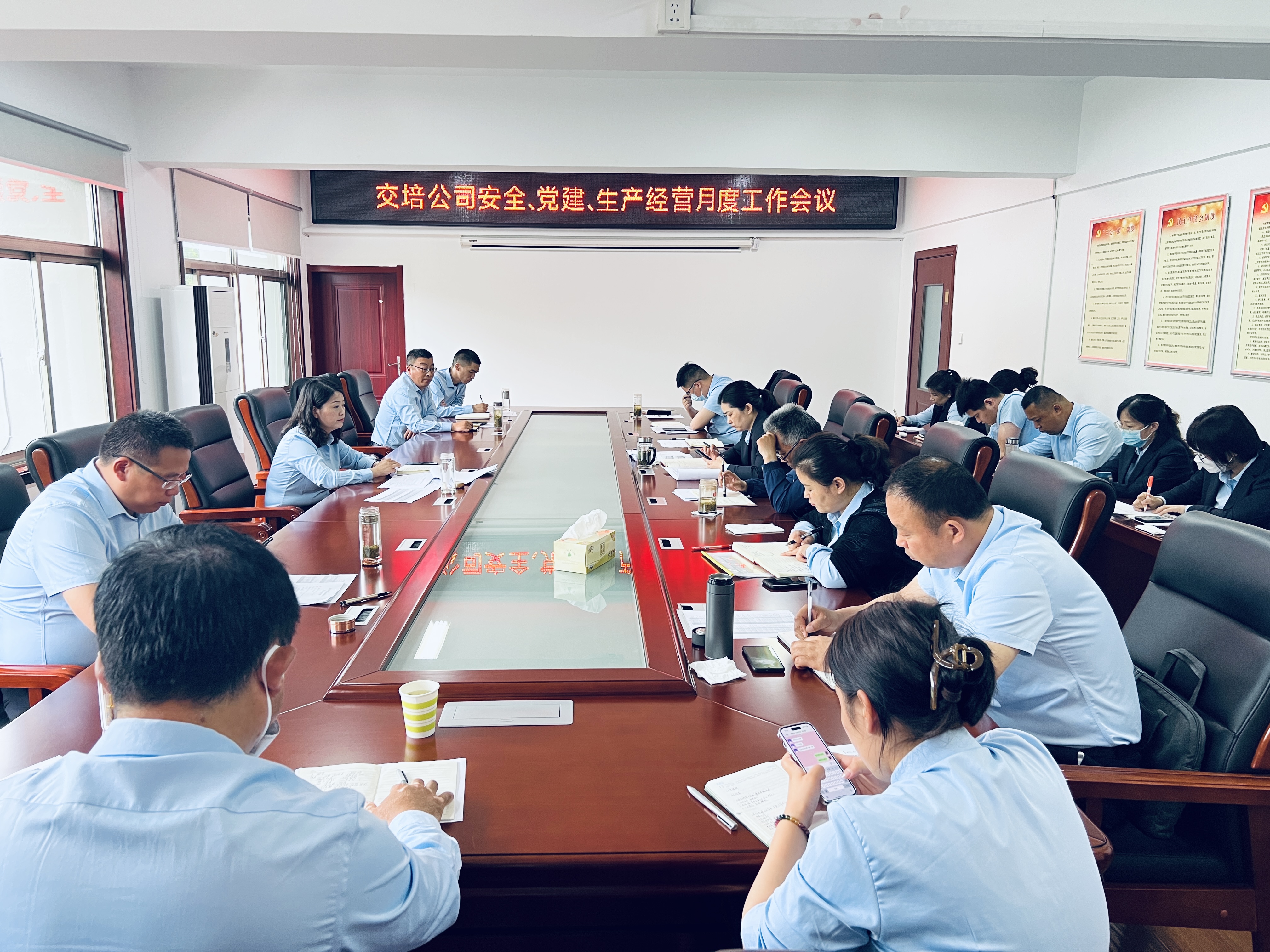 65日,交培公司召开6月份安全、党建生产经营工作例会,公司党政负责人李霞等领导班子及中层以上管理人员参加,会议由公司副总经理徐同龙主持。