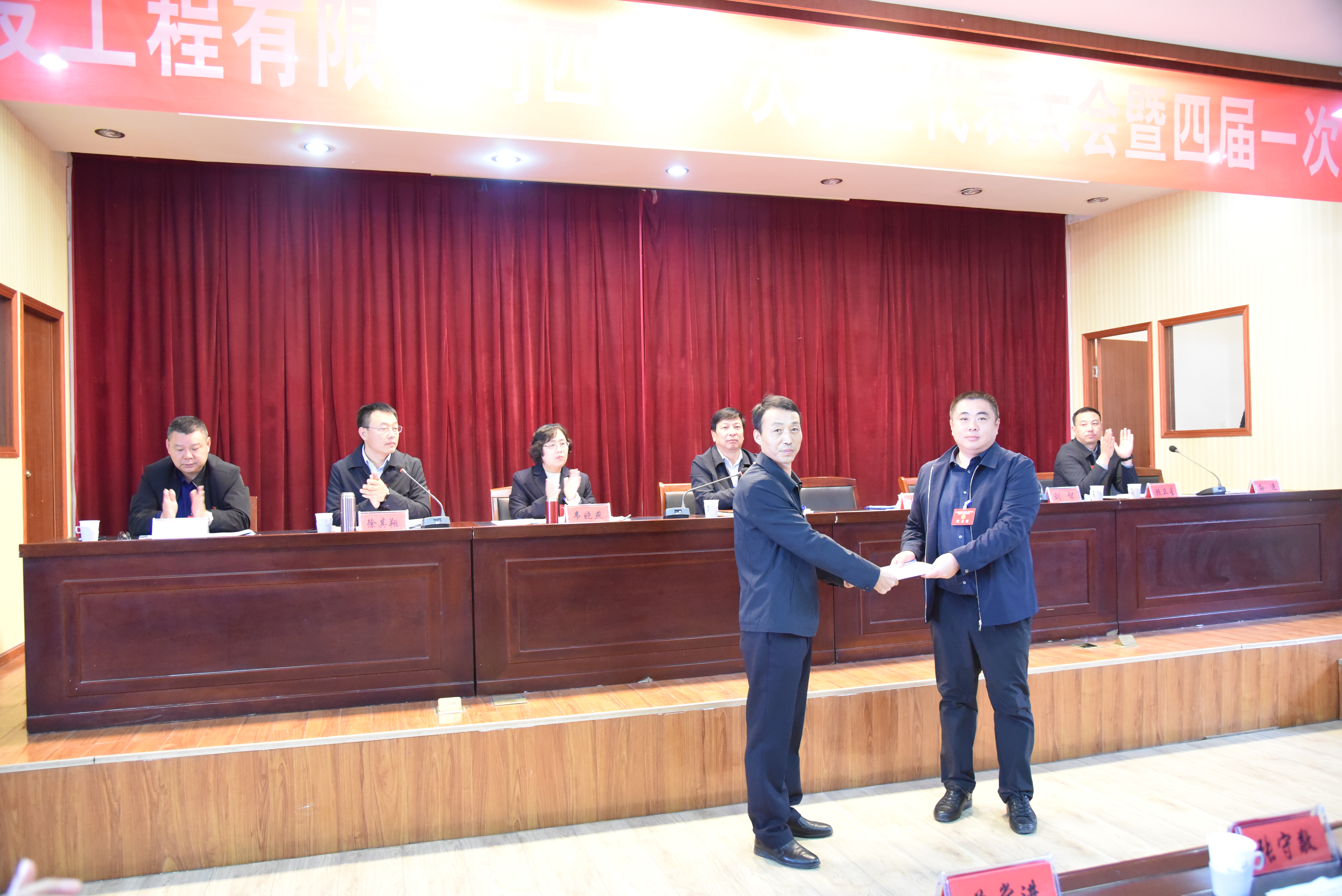 大会还听取审议了《工会工作报告》、《海建财务预算报告》、《海建职工提案审查报告》等,换届选举产生第四届工会委员会委员、经费审查委员会委员、女职工委员会委员、劳动争议调解委员会委员、工会主席、副主席和委员会主任,刘智同志当选为四届工会主席,并向总经理陆飞跃递交了公司四项合同。