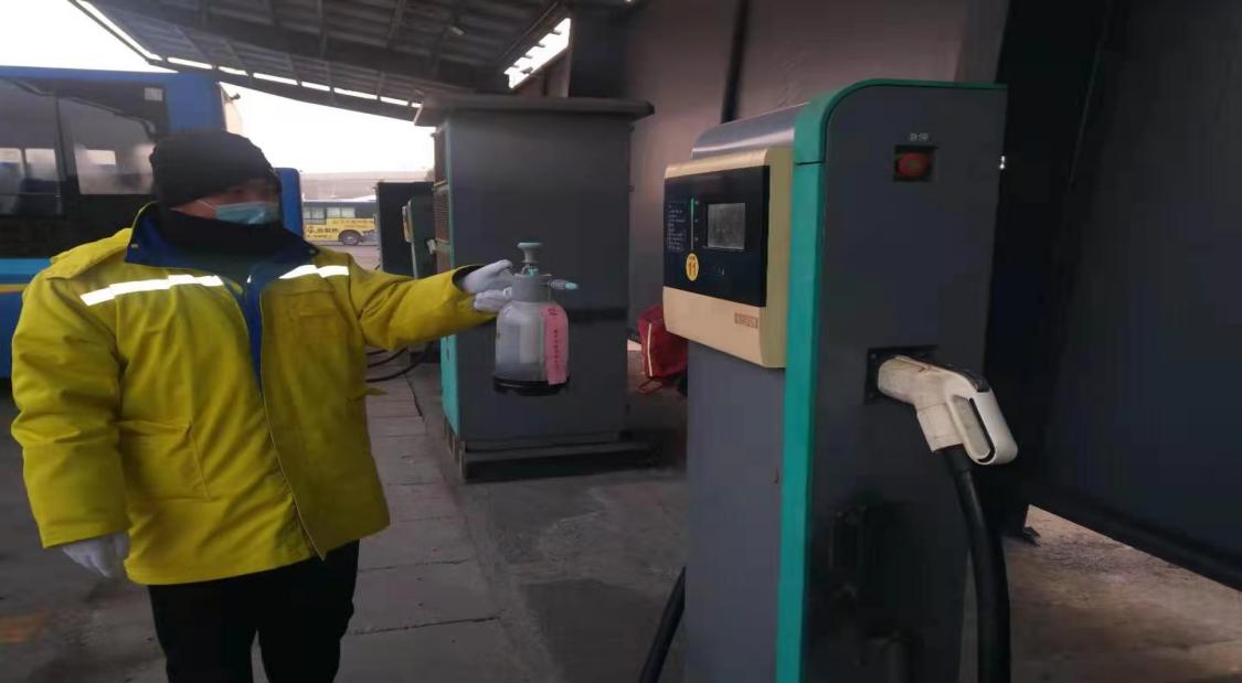 二是做好消毒物品配备。东部充电班组对各个场站的消毒液、喷雾器进行检查,粘贴标识并按要求进行存放。及时发放消毒口罩。督促每日当班人员进行体温检测、佩戴口罩及对充电桩位进行消毒并记录存档。
