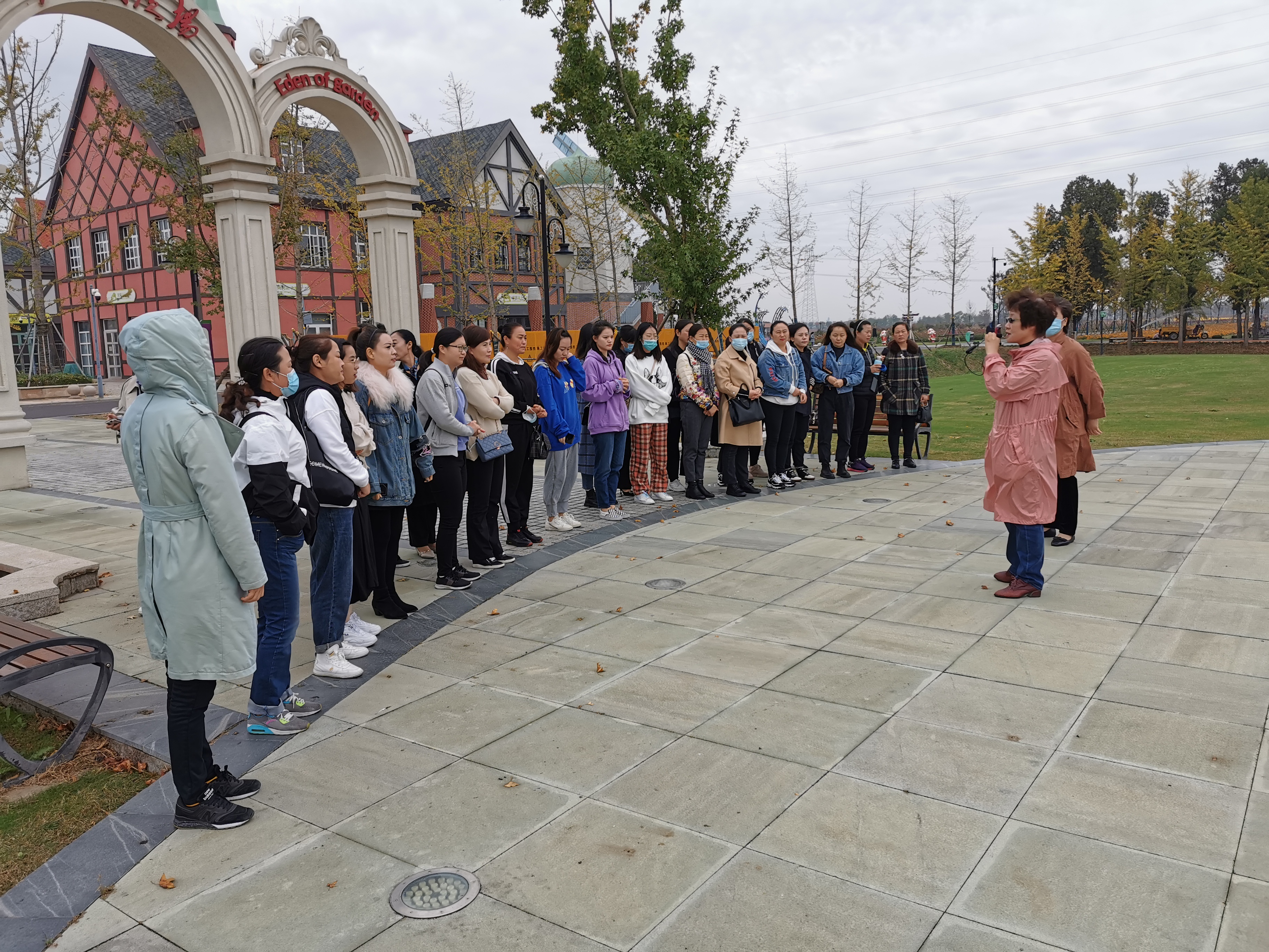 秋高气爽,蓝天白云。上午9点30分,一路欢声笑语的女职工们到达美丽灌云县伊甸园园内,园内鲜花盛开,微风轻拂,蝴蝶也跟着翩翩起舞,女职工们集中合照,留下了一道亮丽的风景。