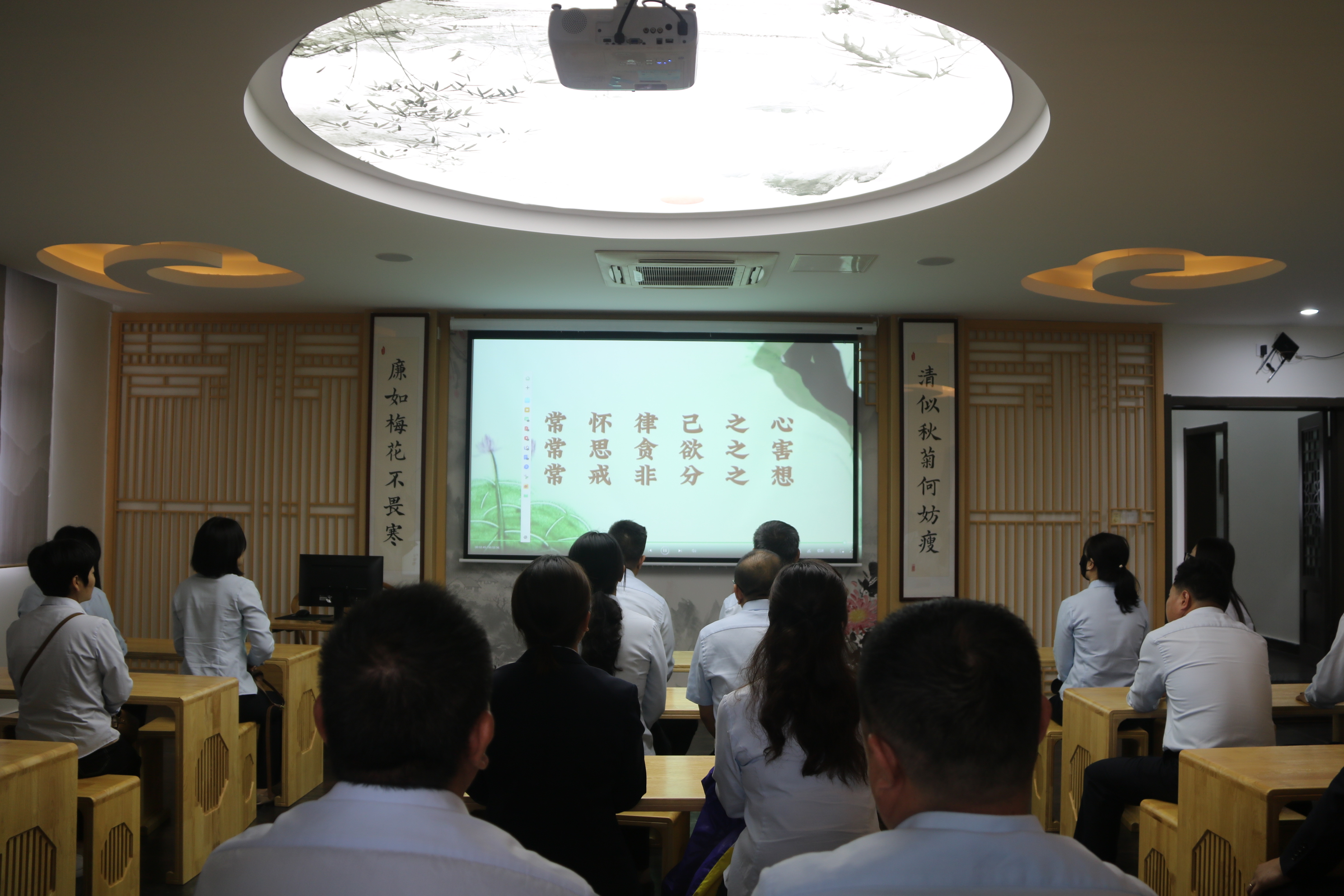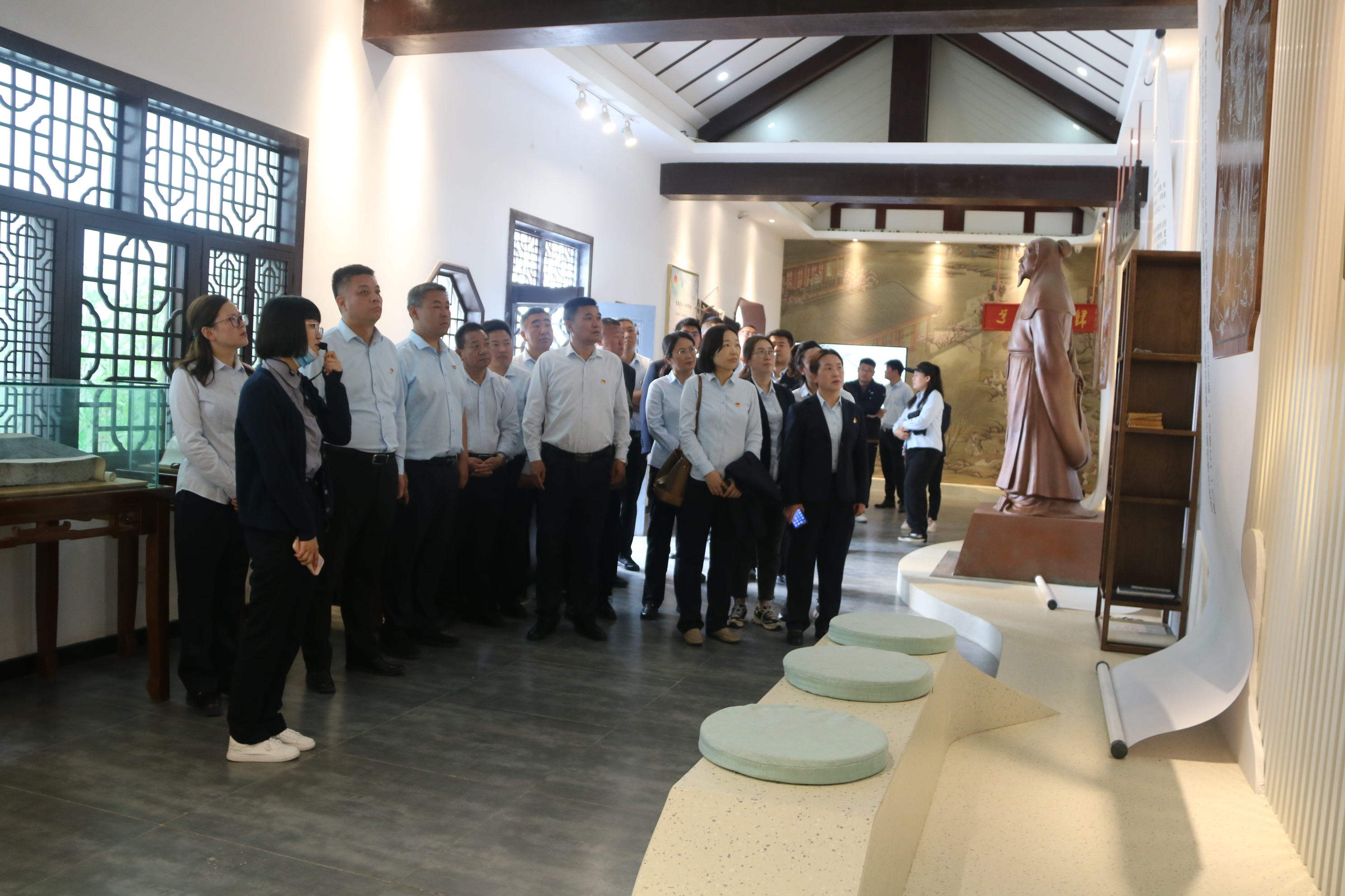 在陶渊明文化园,大家参观了融牌楼、雕像、陶公祠、靖节书院、靖节茶院等景观,认真聆听了陶渊明廉洁齐家、守正不阿、勤政为民、安贫乐道的故事,现场观看了廉政教育短片。